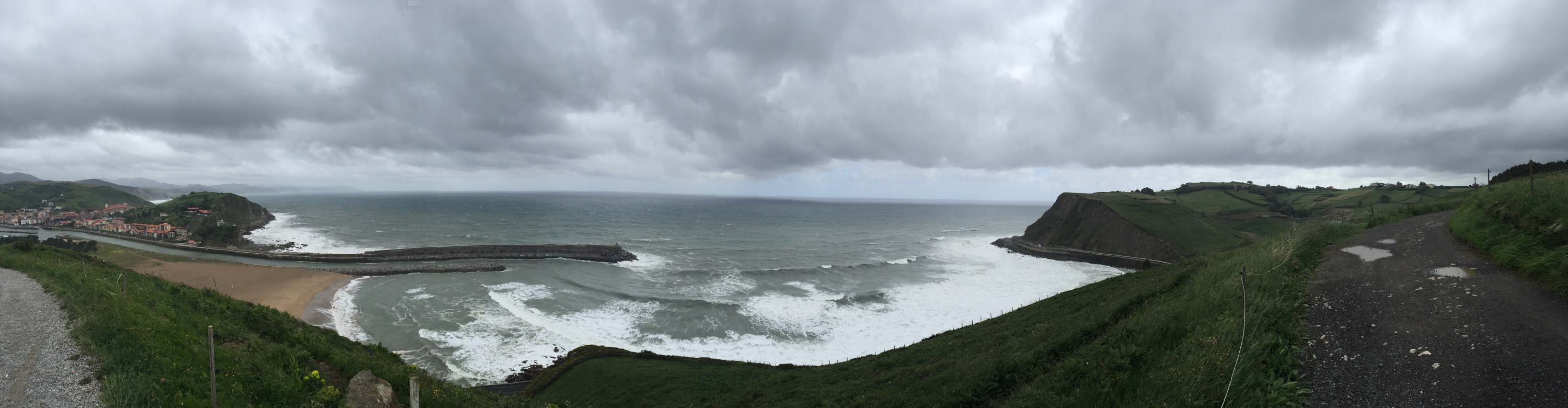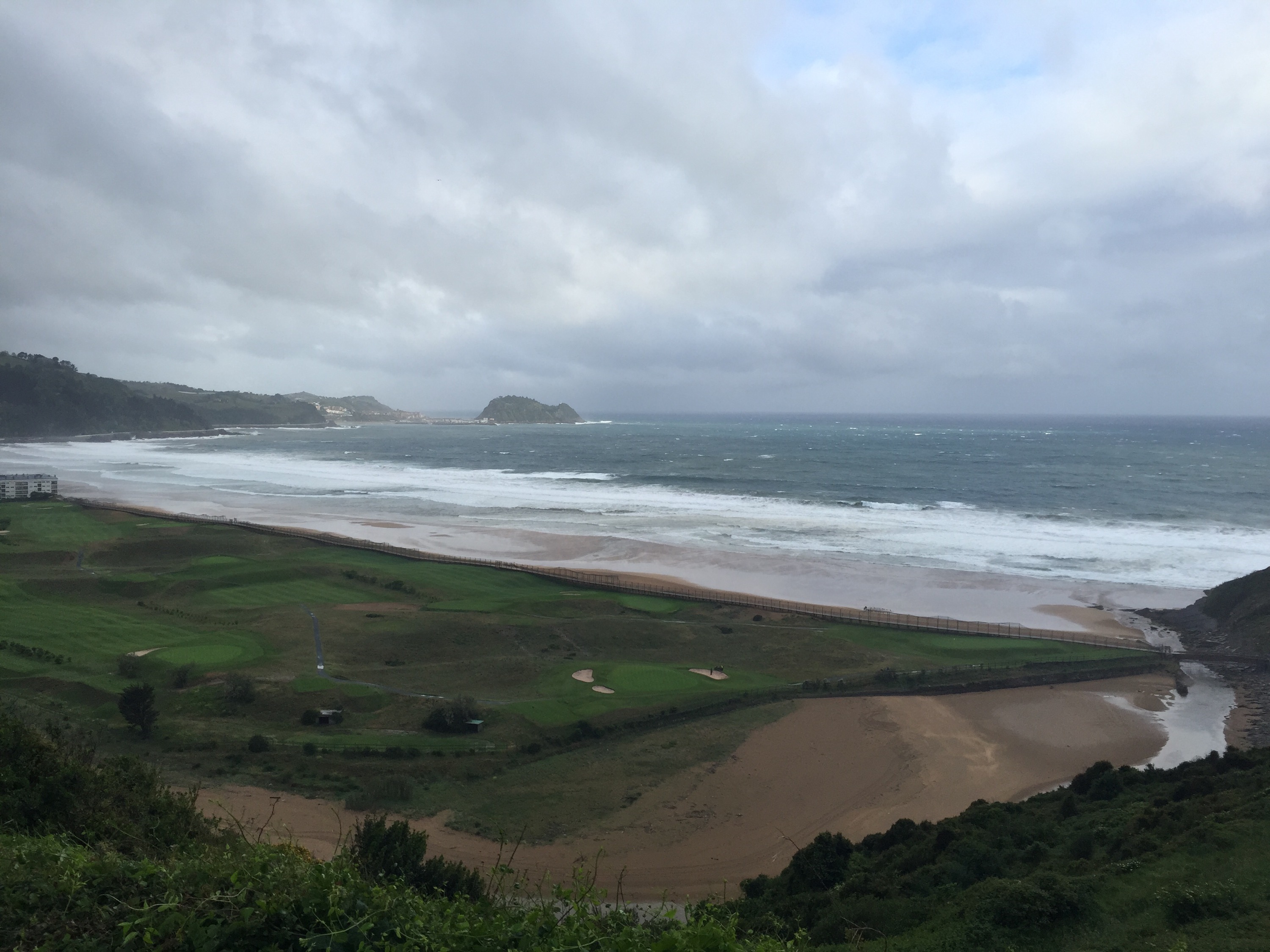 Il primo amore non si scorda mai, e per quanto adesso mi sia innamorato del CrossFit, il primo amore è stato il nuoto. Ecco, questa mattina temevo fosse giunto il momento di mettere il costume ed andare. Per fortuna l’acquazzone più tosto è iniziato appena messo piede nella città di Zarautz e ne abbiamo approfittiamo per fermarci a fare colazione. Botta di culo enorme: primo bar puntato, escono due labrador!!! Ottimo, cani ammessi. Uscendo dalla città rimaniamo incantati dalle grandi onde e dai temerari surfisti che tentavano di cavalcarle. Ci immergiamo nell’entroterra e mi sentivo un pochino sul Garda, distese di vigneti attorno a noi. Tappa abbastanza pesante per il meteo e per i continui saliscendi anche all’interno di boschi con tanto di bel pantano. Ogni tanto tra una collina e l’altra si scorgeva l’oceano mosso dal forte vento. Ultima discesa in picchiata fino a Deba percorsa a mille, motivo…?! Pioveva a dirotto!!!! Arriviamo in città stremati e sorpresa (dovevo e potevo aspettarmelo) nessuna struttura che ospiti animali. Il terrore, la rabbia e un senso di panico entrano in me. Non potevo fare questo ad Alex, lui che mi sta accompagnando in questa faticosa avventura. Lui sempre pronto ad andare, pronto a correre come un pazzo lungo ogni tappa quando lo lascio ibero nonostante i km sulle zampe. Per fortuna trovo un piccolo agriturismo appena fuori dalla città dove la titolare si mette la mano sul cuore e ci accetta per la notte. “Il cane non dorme sul letto vero?”, mi chiede lei. “Nooooooooo stia tranquilla”, risponde Alex di un colore grigio/marrane fanghiglia. Ora siamo qui a letto, eeehm sono qui volevo dire, cotti e stracotti come due asini. Anzi, l’asino a sto giro sono stato io. Ma ho già rimediato prenotando in largo anticipo l’albergue del pellegrino di domani che accetta cani, così si dorme e si viaggia tranquilli. Esperienza, parata in corner, che andrà nel bagaglio di questa lunga avventura. Si impara ogni giorno, soprattutto dagli errori. Dopo la giornata di oggi dico solo una cosa, GRAZIE FEDELE AMICO ALEX.